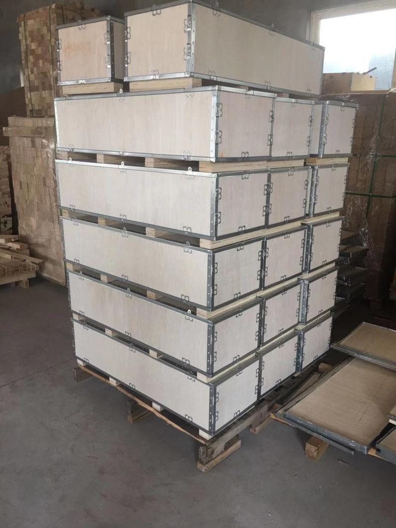 組合式包裝箱,它采用輕質材料制成的板材拼裝而成,具有制造容易,裝拆方便,非使用狀態減少所占空間,易于存放的優點,有利于回收重復多次使用,省工、省料,降低成本,如以塑料代木材、紙板,還可節約木材和紙漿原料。